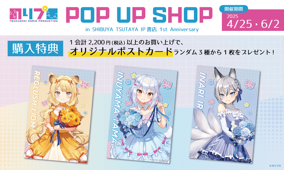 2025年4月25日(火)より、VTuber事務所『のりプロ』のPOP UP SHOPがSHIBUYA TSUTAYA 6階IP書店で開催決定!