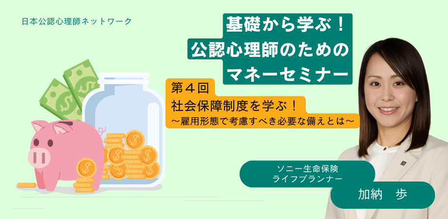 オンラインセミナー「基礎から学ぶ!公認心理師のためのマネーセミナー」 第4回 社会保障制度を学ぶ!〜雇用形態で考慮すべき必要な備えとは〜を開催します