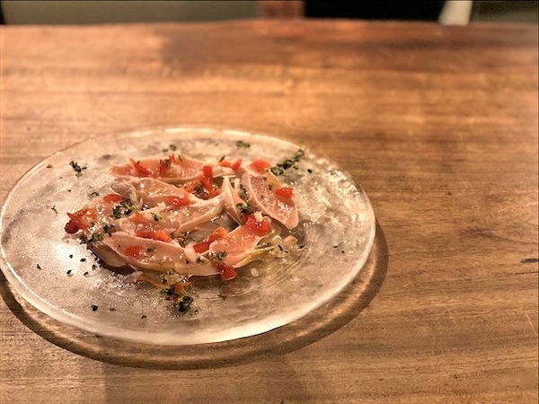 calmaのメニューはそんなシェフが精通しているフレンチを中心にこだわりの海外食材から構成されています。独特のアレンジを加えた繊細な一品が多く、フレンチベースに様々なテイストがトレースされております。お酒にあう食事のチョイスは本場パリで目と舌を使って吸収したセンスが光り、そこには本場のブラッスリーを体感する事ができます。