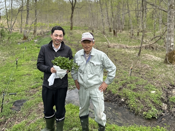 2025年4月22日、料理長たちは「新川クレソン」の生育環境や味の特徴を学ぶため、宿から車で10分ほど、ニッカウヰスキー宮城峡蒸留所すぐそばに位置する、新川地区(仙台市青葉区)を訪ねました。