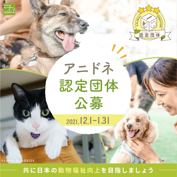 動物関連団体へのオンライン寄付サイト運営の公益社団法人アニマル・ドネーション(所在地:東京都港区、代表理事:西平衣里、以下アニドネ、https://www.animaldonation.org/ )は、2022年度の認定団体の募集を2022年1月31日(月)迄実施しています。エントリーいただいた団体についてはアニドネ審議委員会による認定審議を行い、対象団体として認定されると個人や企業・団体からいただいた寄付の分配先とされます。なお、認定はアニドネが設けている認定基準(※2017年改訂)に基づき審議されます