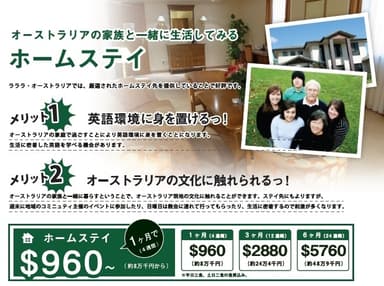 従来の留学の滞在先提供は学校が中心であり、「滞在先はホームステイ」とパッケージのようになっていました。当社では、学校と滞在先(ホームステイ、シェアハウス)の組み合わせを自由に行うことができ、学校を選択する事と同じぐらい滞在先にも重きを置いています。