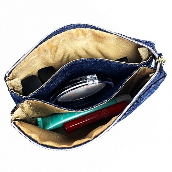 シンプルでオシャレなデニムシリーズから、サイズや形の違うポーチがいろいろ加わりました。カジュアル派の方にはもちろん、男女問わず使いやすいデザインです。