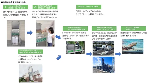 阪急阪神不動産は、分譲マンション〈ジオ〉のご入居者から回収した廃食用油を、また阪急阪神ホテルズは、運営する料飲施設から排出される廃食用油をSAF製造に提供します。