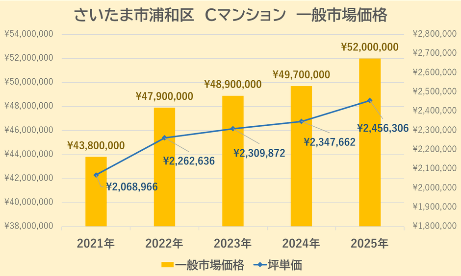 Cマンションの一般市場価格・坪単価の推移は上記【図5】の通りです。