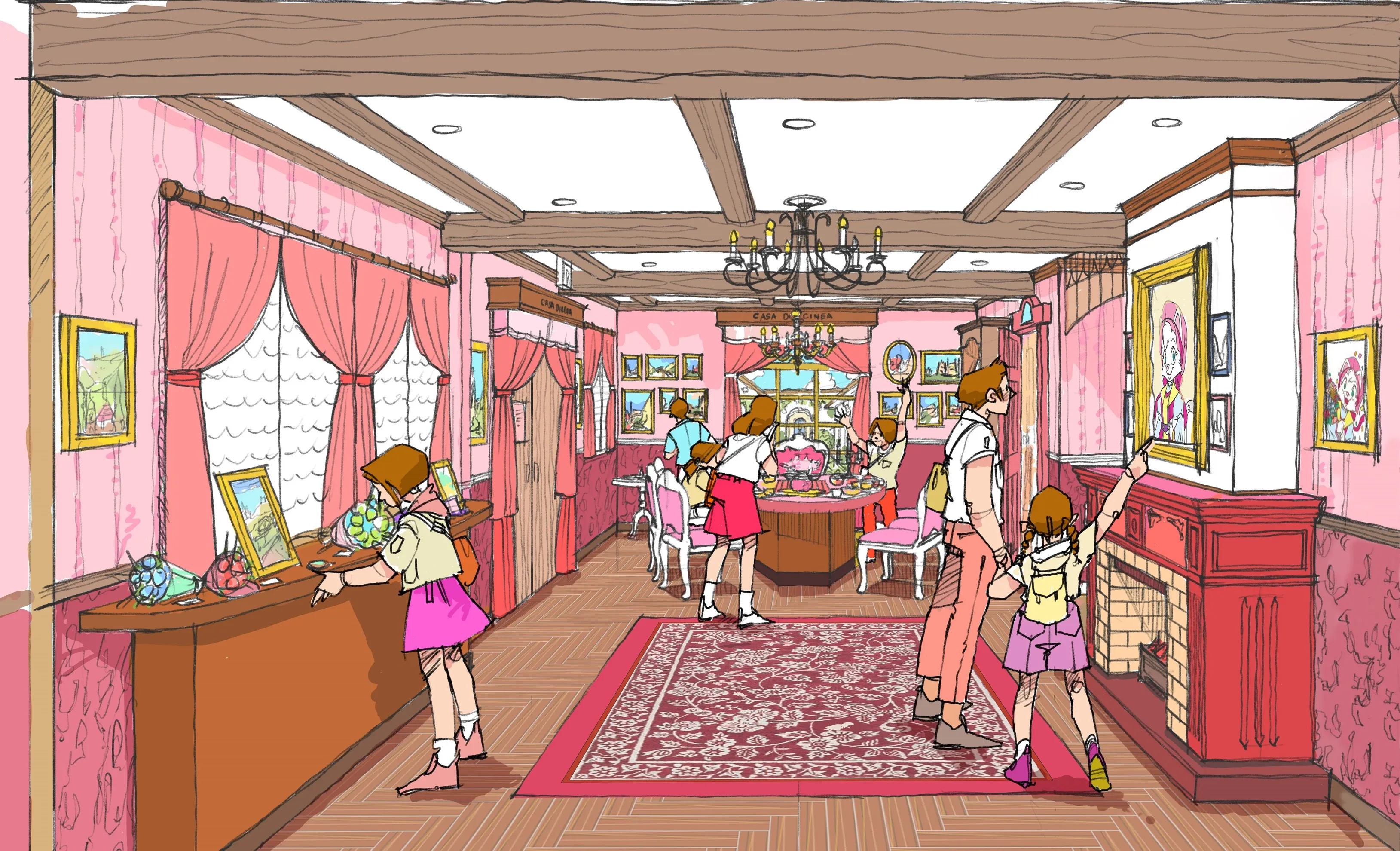 サンタクルス通りの一角に、ダルシネアのおうちをイメージした新スポットが常設施設として登場します。ダルシネアは仲間たちを招待して、ティーパーティーを開催するようです。アンティーク風の家具やスイーツがいっぱいのテーブルをはじめ、ピンクを基調とした「可愛い」がいっぱい詰まったお部屋です。写真撮影やダルシネアとお話ができる遊び心あふれる仕掛けなどをお楽しみください。