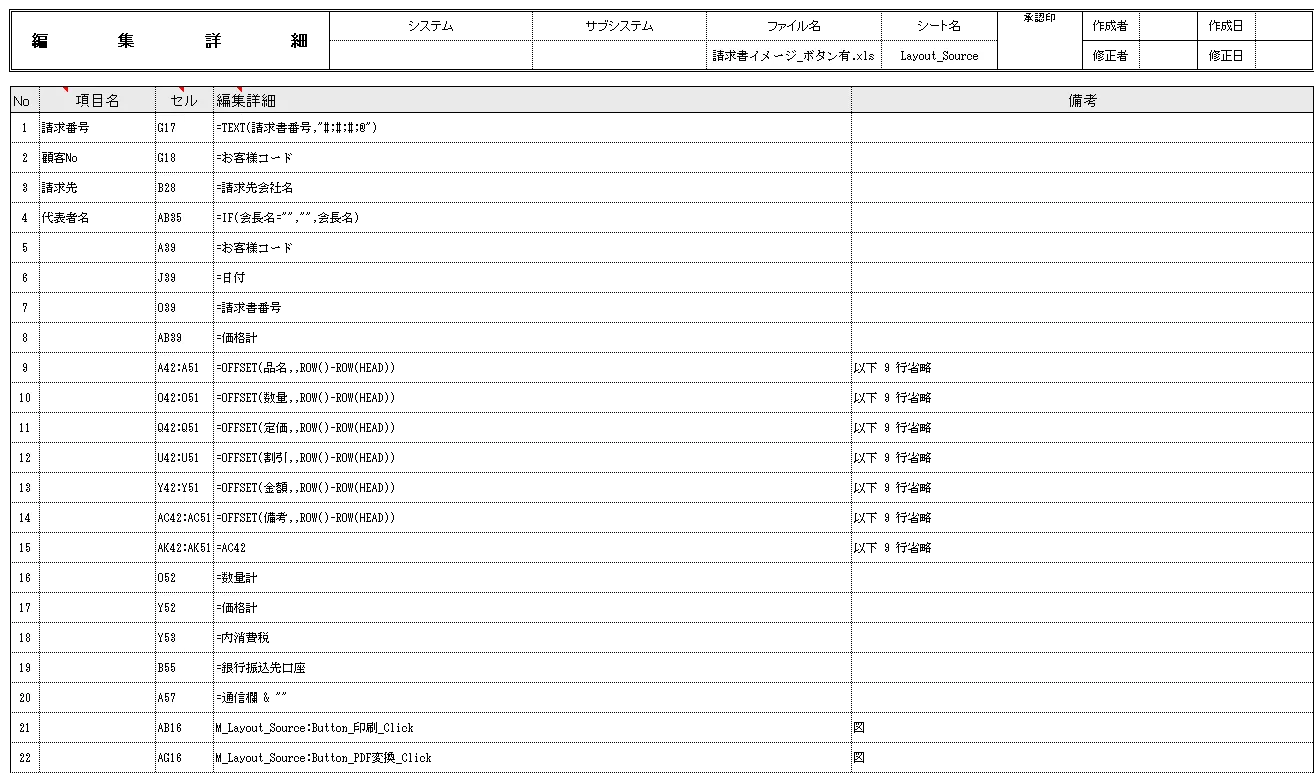 例えば、関数や式であれば、どこに式が設定されているか、どんな式があるか、を効率よく(20行あっても同様の内容なら1行に束ねる等)表現できます。
