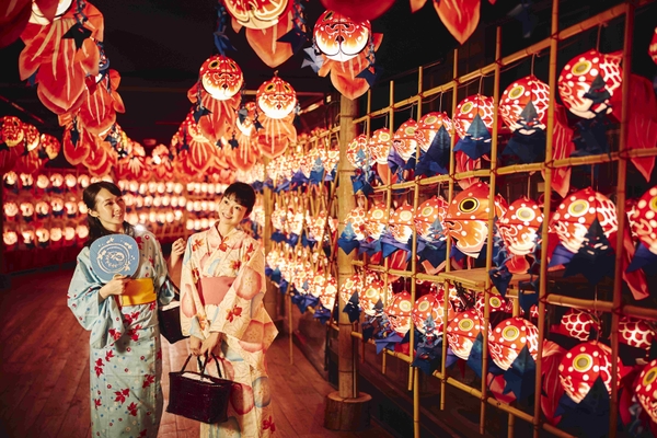 青森屋は、青森の風物詩をテーマに季節ごとのイベントを実施しています。青森には、夏祭りの時期になると街中で飾られる「金魚ねぷた」という灯篭があります。これは昔、津軽藩で藩士のみが飼うことができた津軽錦(つがるにしき)という金魚に、人々が憧れて作ったものが由来と言われ(*2)、青森の夏の象徴として、現在に至るまで愛されてきました。青森屋は、金魚ねぷたから着想を得て、夏祭りの雰囲気に胸が高鳴り、暑い夏に涼を感じられるイベントを考案しました。
