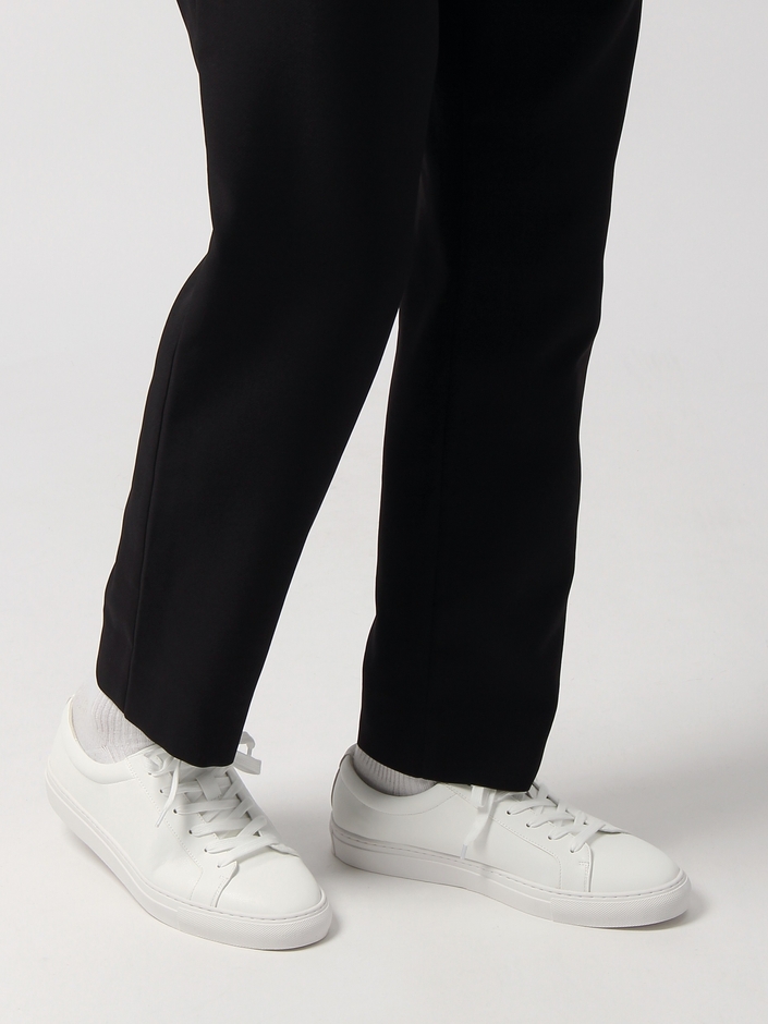昨今、ビジネススタイルの多様化からビジネスシーンでスニーカーを合わせるウェアリングが注目されています。そこで、従来のスポーツシューズなどにみられるようなロゴや装飾をなくし、カラーリングもオールホワイトとオールブラックとしたビジカジスタイルに合わせやすいミニマルなデザインに仕上げました。スタイルは、コートタイプとスリッポンタイプの2型を揃えています。