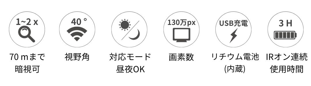 一般の高倍率暗視スコープは視野約10°と狭くなりますが、Nightfoxは4倍の視野角。