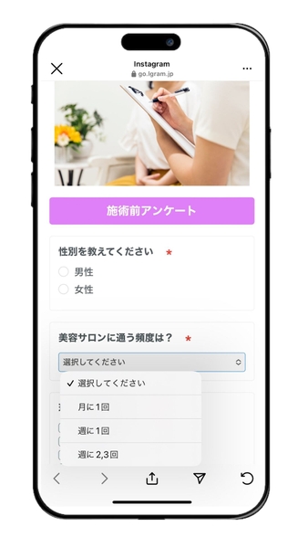 ユーザーに対して性別や年齢、お悩みなどを聞くアンケートの作成・実施も可能です。