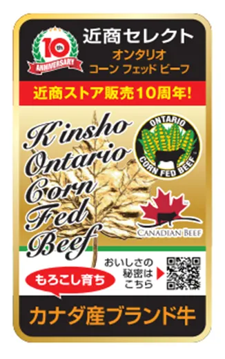 オンタリオコーンフェッドビーフはカナダのオンタリオ州産ブランドビーフです。10周年特別アイキャッチシールなどでお客様にPRを行います。