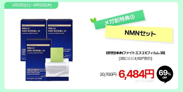 特典③ 植物性NMNファイトエス2Xフィルム 3箱 [3個ごとに4,100円割引]