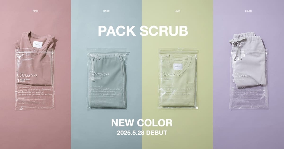 テーラード技術を取り入れた白衣を中心に、メディカルアパレルの企画・開発・販売を行うクラシコ株式会社【創業: 2008 年 / 所在地:東京都港区 / 代表取締役 CEO:大和 新(おおわ あらた)】は、ブランドのエントリーモデルとして高い人気を誇る「PACK(パック)」シリーズに、新たな4色(ライム、ライラック、ピンク、サックス)を追加いたしました。