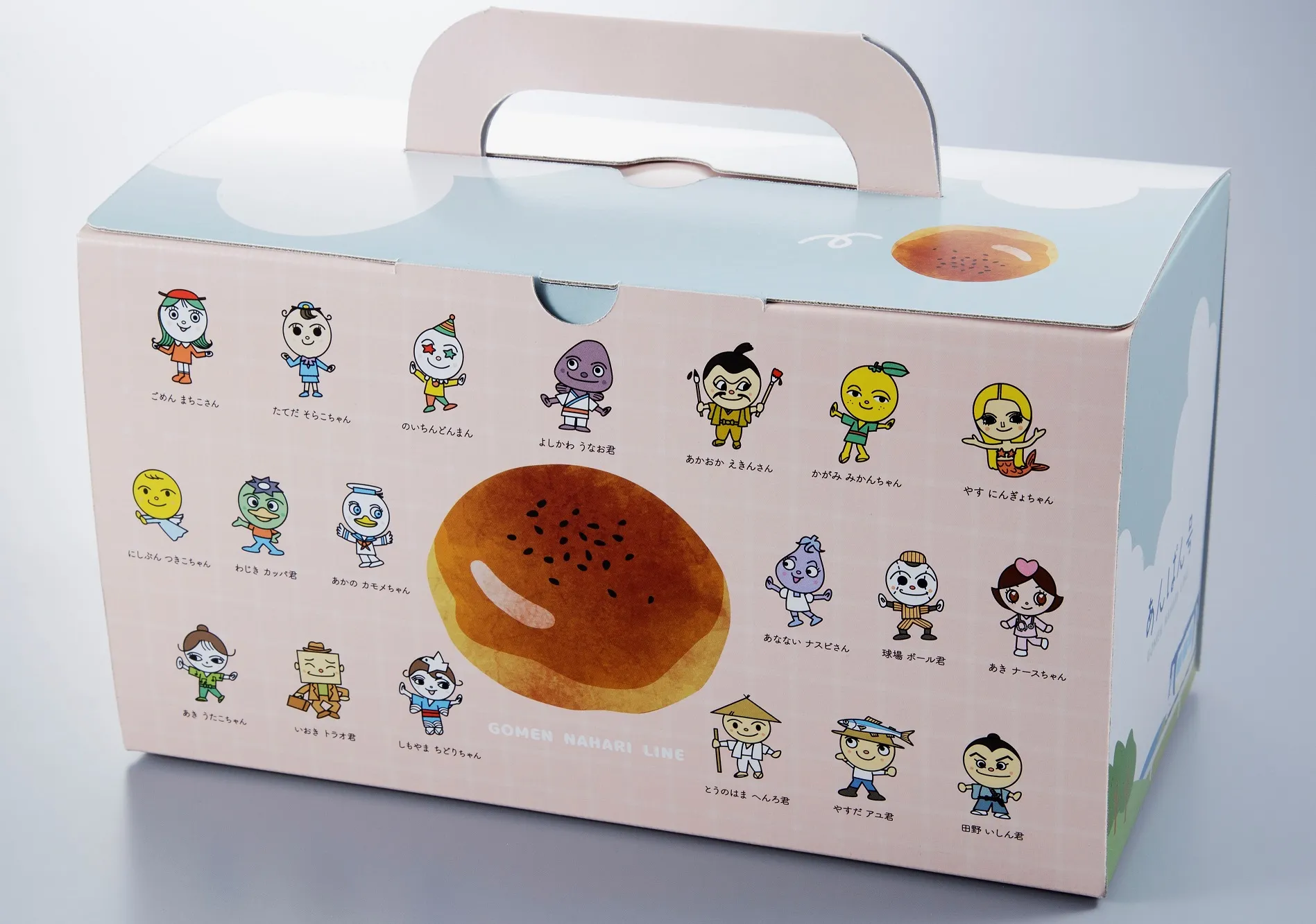 魅力その1:ファン必見!ご当地キャラクターがデザインされたオリジナルパッケージに入ったあんぱんBOXが登場します。