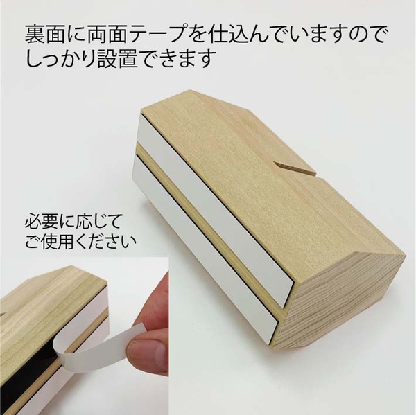 裏面に両面テープを仕込んでいるため、しっかり設置できます。