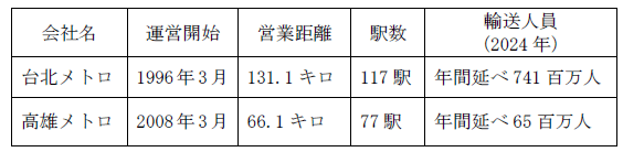 〇台北メトロ・高雄メトロとそれぞれ友好協定締結式を実施 〇沿線エリアの情報発信や観光プロモーションで協力し合う