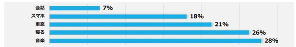 ◆ 車内で、音楽を聴いたり睡眠をとる等、自宅のリビングでくつろぐように過ごす人が多い。