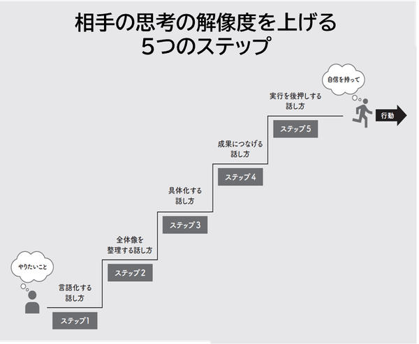 それは、相手がやる気を出して行動し、成果を上げるまでに、思考の解像度を5段階で上げていく必要があるからです。