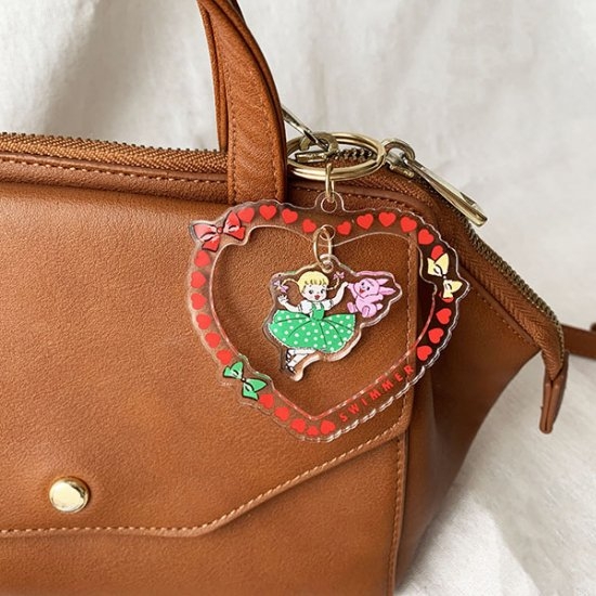 ハートのアクリルチャームにデザインされていて、まさにオトナカワイイアイテム。バッグやポーチに取り付けたり、キーチェーンとして使用したりと楽しんでいただけます。