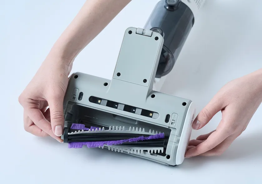 工具なしでブラシカバーが開き、簡単にブラシをメンテナンスすることができます。ダストボックス部分は丸ごと水洗い可能。