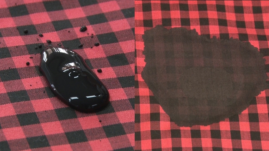 最初の挑戦は醤油、果物エキスをはじめとしたさまざまな成分が入り混じっている「焼肉のタレ」がついた布。