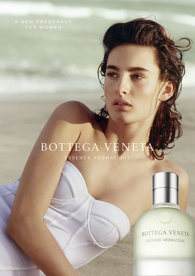 トーマス・マイヤーの「ボッテガ・ヴェネタ エッセンス アロマティック」に対するビジョンは、イタリアの「ドルチェ・ヴィータ(甘い生活)」を喚起するもので、“ボッテガ・ヴェネタ ウーマン”のライフスタイルにおける異なる側面の真髄を捉えています。例えばある夏の日、真っ白な水着を着た魅力的な女性がビーチで心地よく横たわり、彼女の髪が風になびいています。その瞬間、エレガンスがさりげなく解き放たれ、彼女の内面にある美しさを引き立てます。背景には、ジェイドグリーンの海が広がり、フレグランスが香ります。マイヤーは「最もインスパイアされたのは爽快な夏の日、海辺の静けさ、太陽の暖かさ、それにうっとりするような海です。女性が身につけた時、まさに彼女の控えめな自信のように、長く香る予想もつかない、クリスピーなコロンを創りたいと思いました」。
