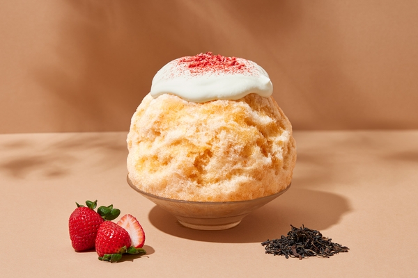 台湾茶の中でも人気の「東方美人茶」を使った茶氷です。東方美人茶が持つ芳醇で蜜のような甘い香りを生かしたオリジナルシロップで、お茶の風味が口の中に広がります。茶氷の中にはかき氷で定番のいちごと練乳を組み合わせ、さらにイチゴ東方美人茶のジェラートが入っています。いちごのつぶつぶとした果肉感と甘酸っぱさ、練乳のコクのある甘さ、東方美人茶の風味が織りなすハーモニーを堪能できます。