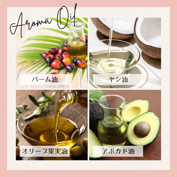 ▶ヤシ油(ココナッツ油):ココヤシの実からとれる油。キメ細やかなクリーミーな泡立ちと洗浄力に優れた石鹸に仕上がる。(ラウリン酸)