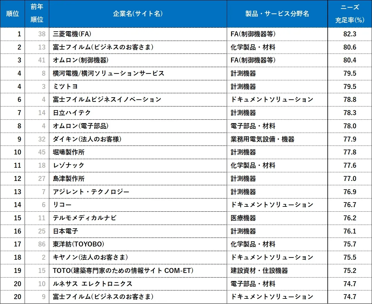 ニーズ充足率でも三菱電機(FA)がトップ、ユーザー視点に立ったUIと会員サービス「FAメンバーズ」の強化が高評価に貢献