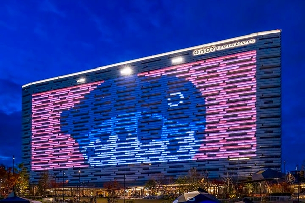 特徴4 ホテルの外装膜に浮かびあがる「PIKAPIKAふぐナイトショー」