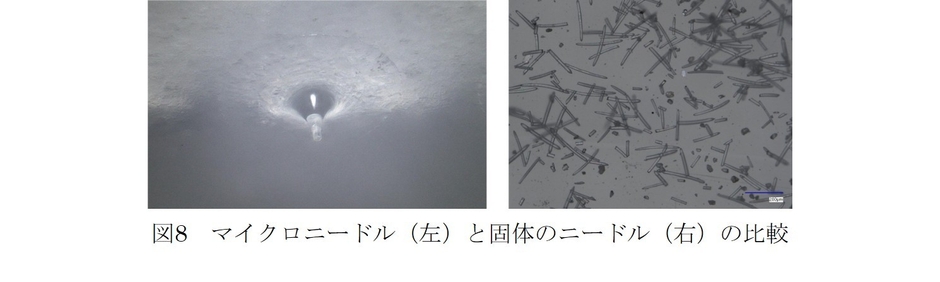 なお、ニードルには、長さ、太さ、強度、本数の違いなど様々な種類のものが存在します。ニードルの「刺す」という基本性能は、ニードルの形状やニードル同士の間隔などに影響され、届けたい場所や成分によって、求められる設計も異なります。今後、ニードルの形状、間隔などの違いによる皮内挙動の差についても研究を進め、DDS技術としての更なる展開を目指して参ります。