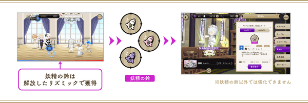 SR シルバー[ガラ・クチュール]とR ジャック[ガラ・クチュール]の魔法強化は本イベントのリズミックや、期間限定ミッションで獲得できる「妖精の鈴」を使用します。