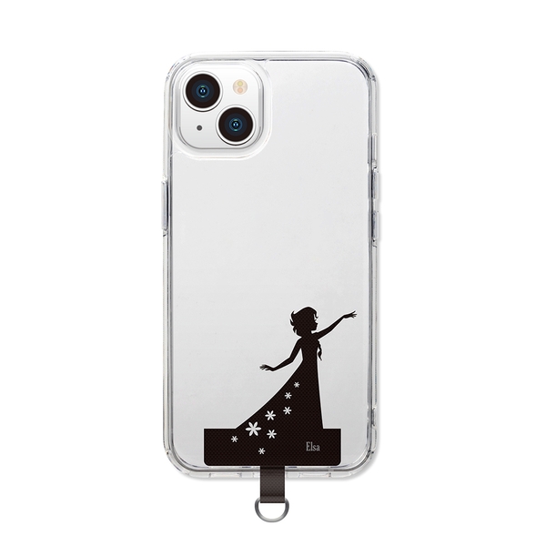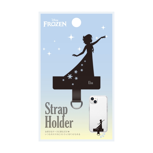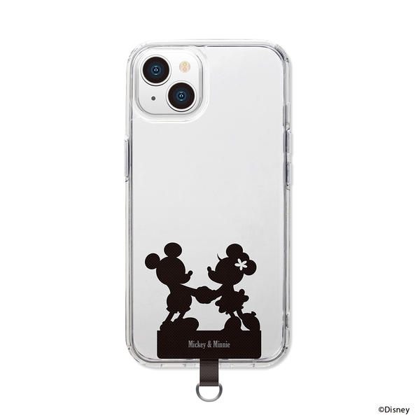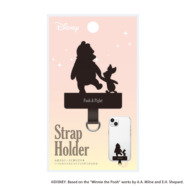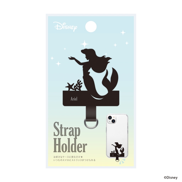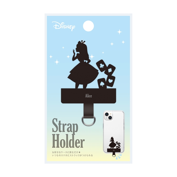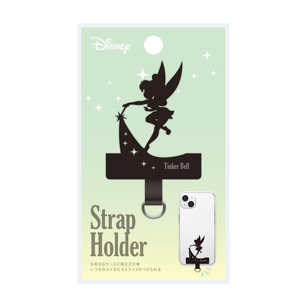 ストラップホールのないケースに挟むだけでストラップが付けられる、ディズニーキャラクターデザインのダイカット ストラップホルダーです。ナイロン素材をカットした品のあるシルエットデザインでクリアケースとの相性も抜群です。