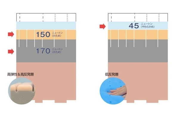 新たに採用した低反発ウレタン層が、身体をやさしく包み込むようにフィット。まるで雲に浮かぶような、心地よい眠りを体感できます。