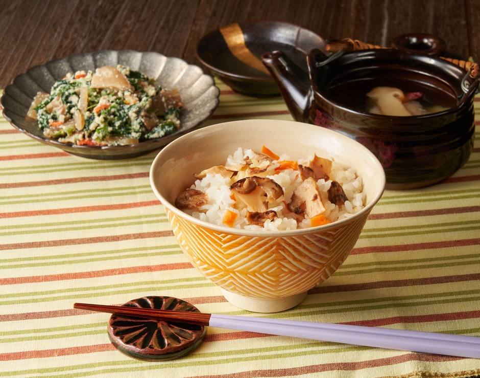 海老や鱧など6種類の具材を入れ、上品な松茸の香りと伝統のお出汁でしっかりとした味わいの「土瓶蒸し」に、松茸独特の香りと京風の優しい味わいに仕上げた「松茸の炊き込みご飯」、それに、おばんざいの代表格である「白あえ」に松茸を入れた季節限定商品を作りました。1品ごと個食パックにて冷凍していて、便利です。