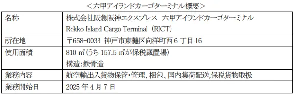 阪急阪神エクスプレス(本社:大阪市北区 代表取締役社長:谷村 和宏)は、兵庫県神戸市の六甲アイランド内で倉庫を移転し、4月7日より六甲アイランドカーゴターミナル(以下、RICT)として営業を開始しました。また、子会社である阪急阪神ロジパートナーズがRICT内の保税蔵置場の認可を取得し、5月1日より保税貨物の取り扱いを開始しています。