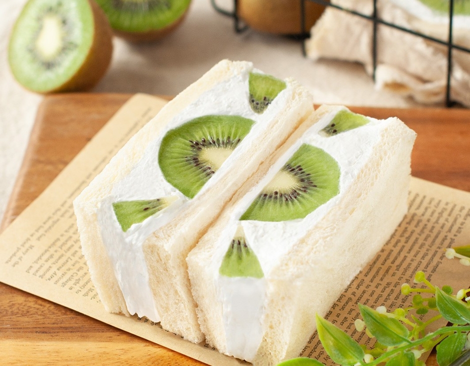 商品特徴:太陽を沢山浴びたジューシーなキウイと、たっぷりクリームがうれしいフレッシュサンドです。