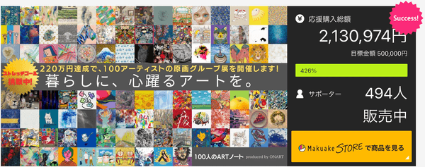 公募によって選ばれた100人のアーティストの作品が表紙になったARTノートと原画展