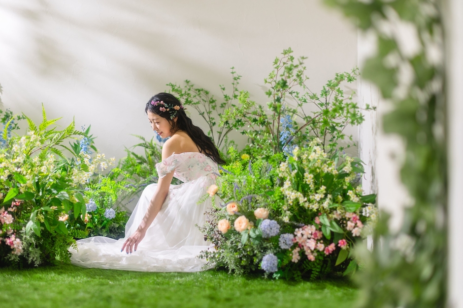 一面に咲き誇る藤の花に囲まれた幻想的な空間。(スタジオエイト名古屋店)