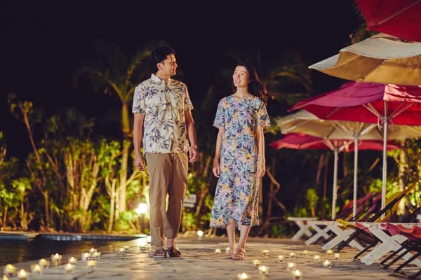 ロマンティックな時間を存分に満喫できるよう、リゾートドレスや、かりゆしウェアを貸し出します。シンプルなデザインから南国で出会える海洋生物を描いたデザインまで、さまざま用意。好みの一着を選び、より一層非日常の時間を過ごすことができます。