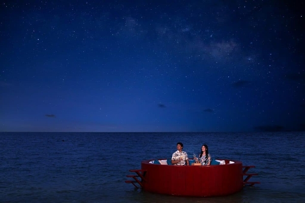 日本最南端の八重山諸島に位置する離島のビーチリゾート「星野リゾート リゾナーレ小浜島」は、2022年6月1日~7月31日の期間、満天の星を独占するアクティビティ「星空海上ラウンジ」が登場します。日によって天の川が見えるときもあり、海上から見ると、まるで180度星に囲まれているよう。透明度の高い海の上で波音に耳を傾けながら、絶景とともにお酒を味わい、ゆったりとした時間を過ごせるアクティビティです。