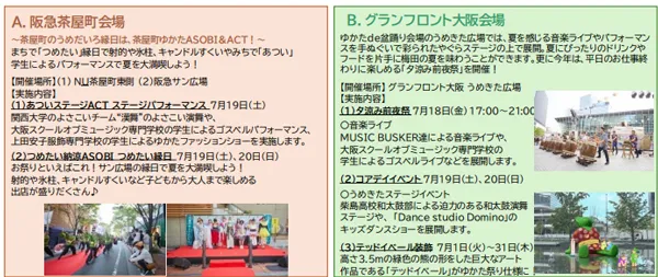 また期間中は、梅田エリアの商業施設、店舗、ホテル、企業、学校で、ゆかた着用や装飾等によるおもてなしや限定サービスを実施します。