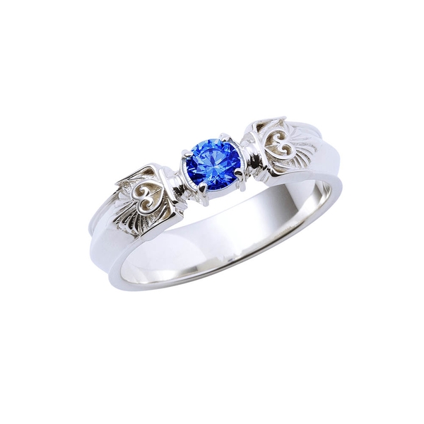 正宗の指環(刃)は洗練されたシルバーカラーを施した真っ直ぐな型に、大粒のイメージカラーストーンを配しました。大きなストーンが贅沢なデザインです。