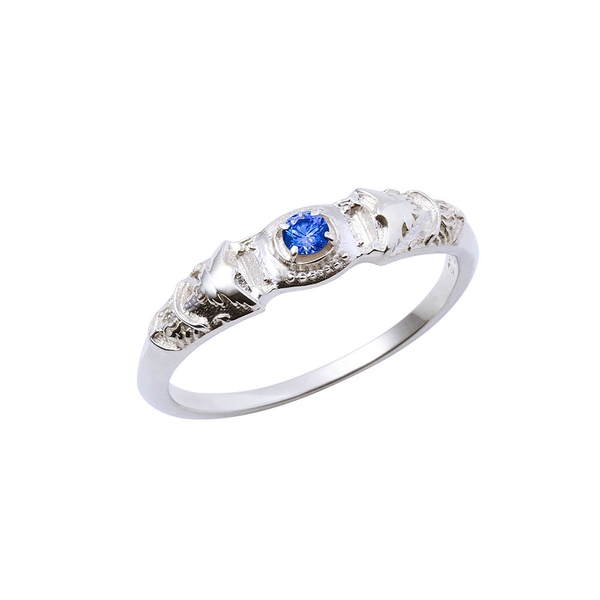 宮沢の指環(弓)は洗練されたシルバーカラーを施したカレッジリング風の型に、イメージカラーストーンを配しました。上品なデザインです。