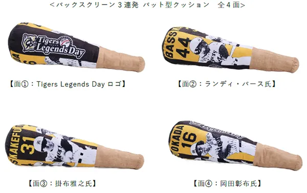 タイガース レジェンズコラボ グルメキャンペーン第三弾を開催 ~ランディ・バース氏、掛布雅之氏、岡田彰布氏を デザインした「バックスクリーン3連発 バット型クッション」を90名様にプレゼント~