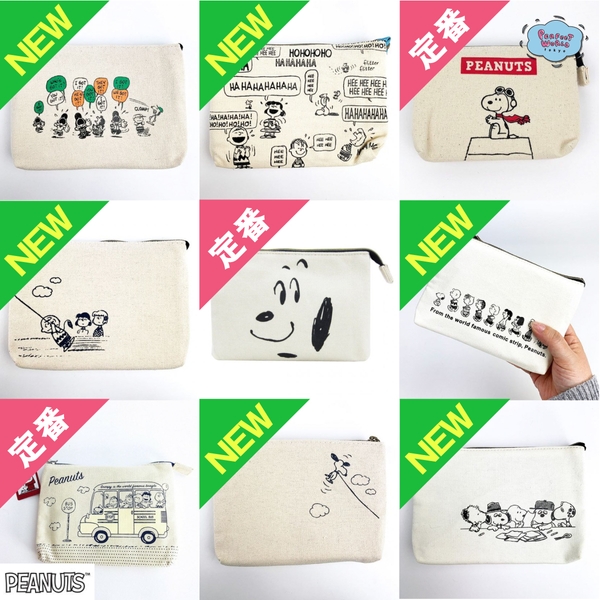 毎回アートで楽しませてくれるスヌーピーの3ポケットポーチ。新柄ですよー♪もう14柄も出たか、、上品でシンプルなキャンバス地。
