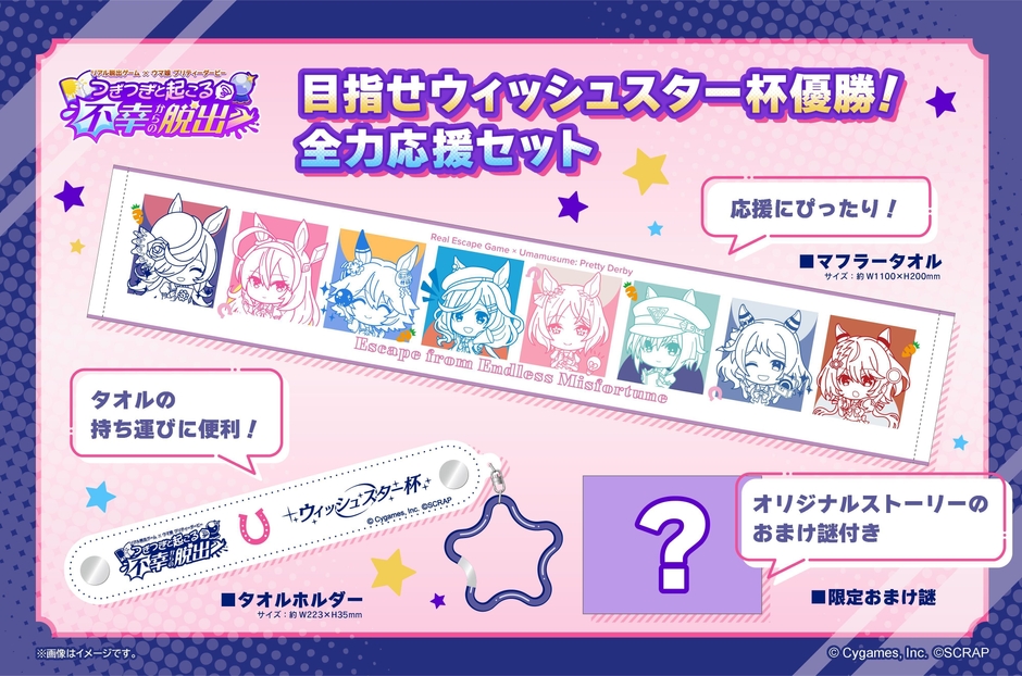 全世界で累計1,300万人以上を動員しているリアル脱出ゲームを企画制作する株式会社SCRAP(本社:東京都渋谷区、代表:加藤隆生)は、リアル脱出ゲーム×ウマ娘 プリティーダービー『つぎつぎと起こる不幸からの脱出』の開催を記念して、コラボメニューの詳細とスタンプラリーキャンペーンの開催を発表いたします。