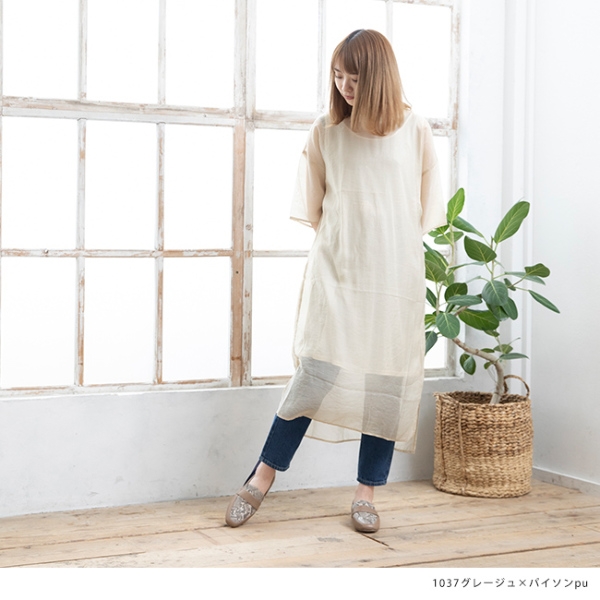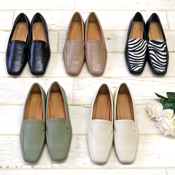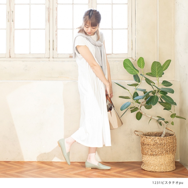 シュッとしたシャープなシルエットが魅力のフラットローファー。 とんがりすぎないポインテッドトゥでさらっと女性らしい雰囲気に 履き口が深いので、安定感が良く歩きやすい。 ブラックなどベーシックカラーは普段履きだけではなく、通勤や学校行事にも使える。 トレンドカラーはデニムとも相性が良く、ちょっとしたお出かけ、お友達と遊びにも!