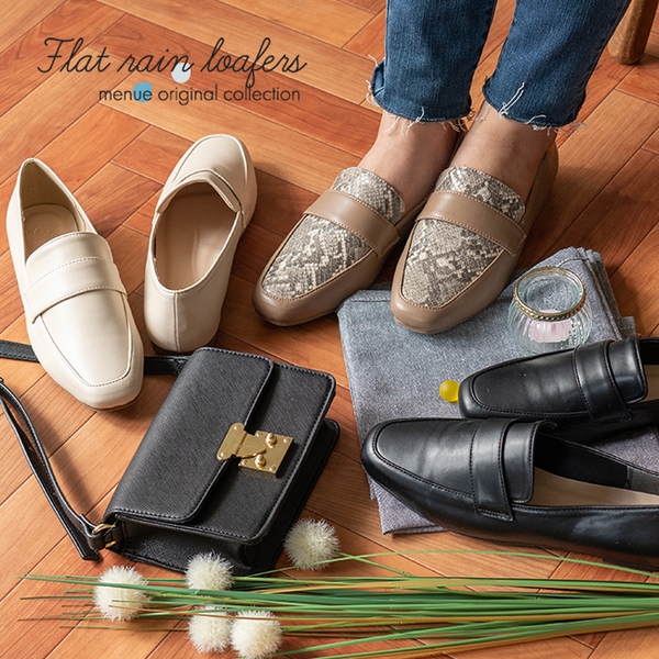 突然の雨の日でも足元をキレイに保ってくれる晴雨兼用ローファー。 生地の切り替え部分に防水テープを使用しているので水をしみこみにくくしてくれる。 アウトソールの合成ゴム素材は滑りにくいのでさらに安心! 会社や学校、車に忍ばせておくと、予報が外れたきちっとシーンにも焦ることなく対応できる余裕ある大人の女性に。 丸みのある親しげなスクエアトゥのシルエットで晴れの日も気分UP! 天候が怪しい日には持ってこいの大活躍なアイテムです!
